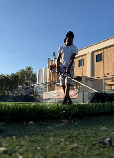 Our maintenance services include power grooming, debris removal, infill redistribution, seam and edge inspections, minor repairs, and surface performance checks. These routine services help prevent premature wear, maintain proper drainage, and ensure a consistent playing surface.